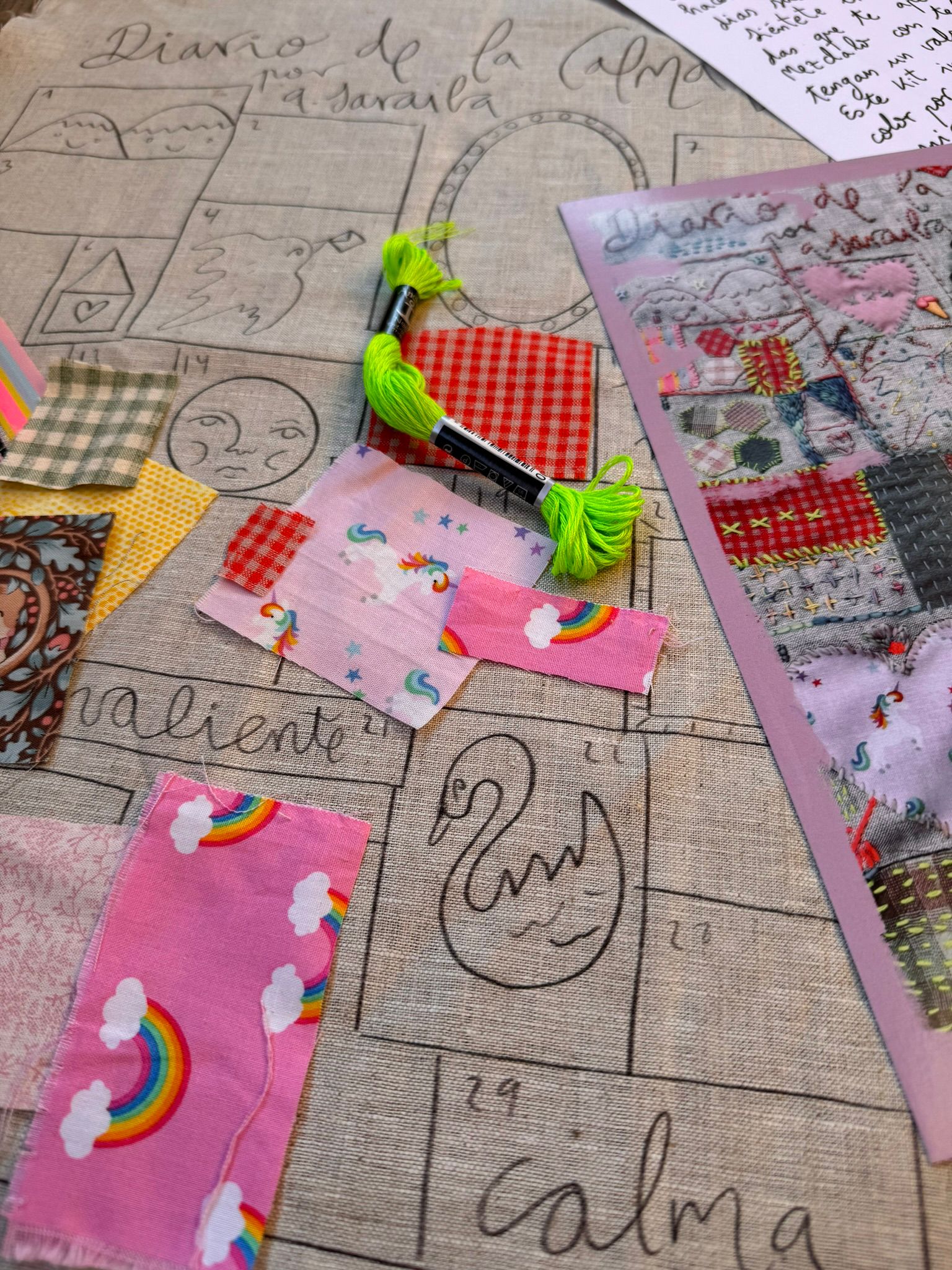 Each student will work from a thoughtfully assembled kit designed by Aitor, featuring linen produced in Spain and a structured sequence of stitched prompts that unfold gradually as you sew. These steps offer gentle guidance while leaving room for personal interpretation, allowing each journal to evolve uniquely in the maker’s hands.